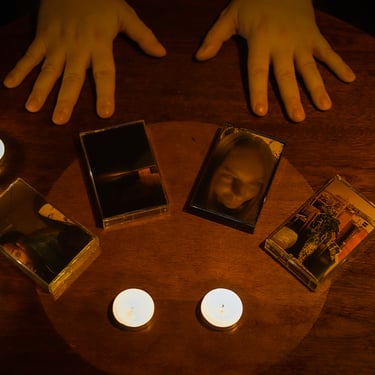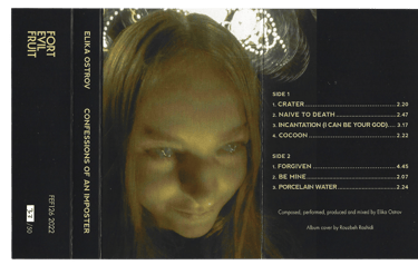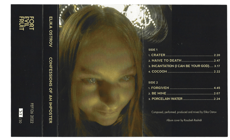 "Confessions Of An Imposter" is constructed between the concept of hysteria and liberation of possessed sound, accompanied by poems written between 2019 and 2021. Its roots are purely hypnopompic, existing on the conscious verge between dreaming and wakefulness of multiple voices, struggling and dissociating each in their own real